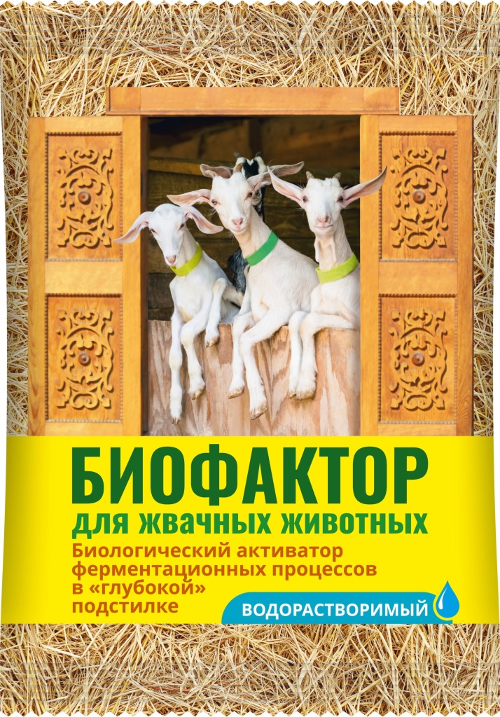 Биологический активатор ферментационных процессов в «глубокой» подстилке.Назначение: препарат предназначен для ускорения процессов ферментации и биодеструкции подстилочного материала и навоза жвачных животных (коров, телят, коз, лошадей) с целью ускорения переработки подстилки и поддержания более здорового микроклимата в помещении.