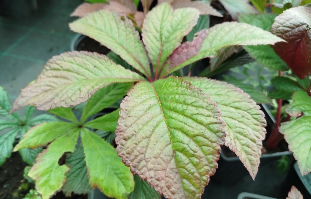 Шикарный «солист» для «дорогого», современного теневого садика. Экзотика и масштаб! Рослый многолетник (высотой до полутора метров) с фактурными, веером, листовыми пластинками. Высокие беловатые, розоватые метелки соцветий, цветущие в июне-июле, служат дополнением к ним.