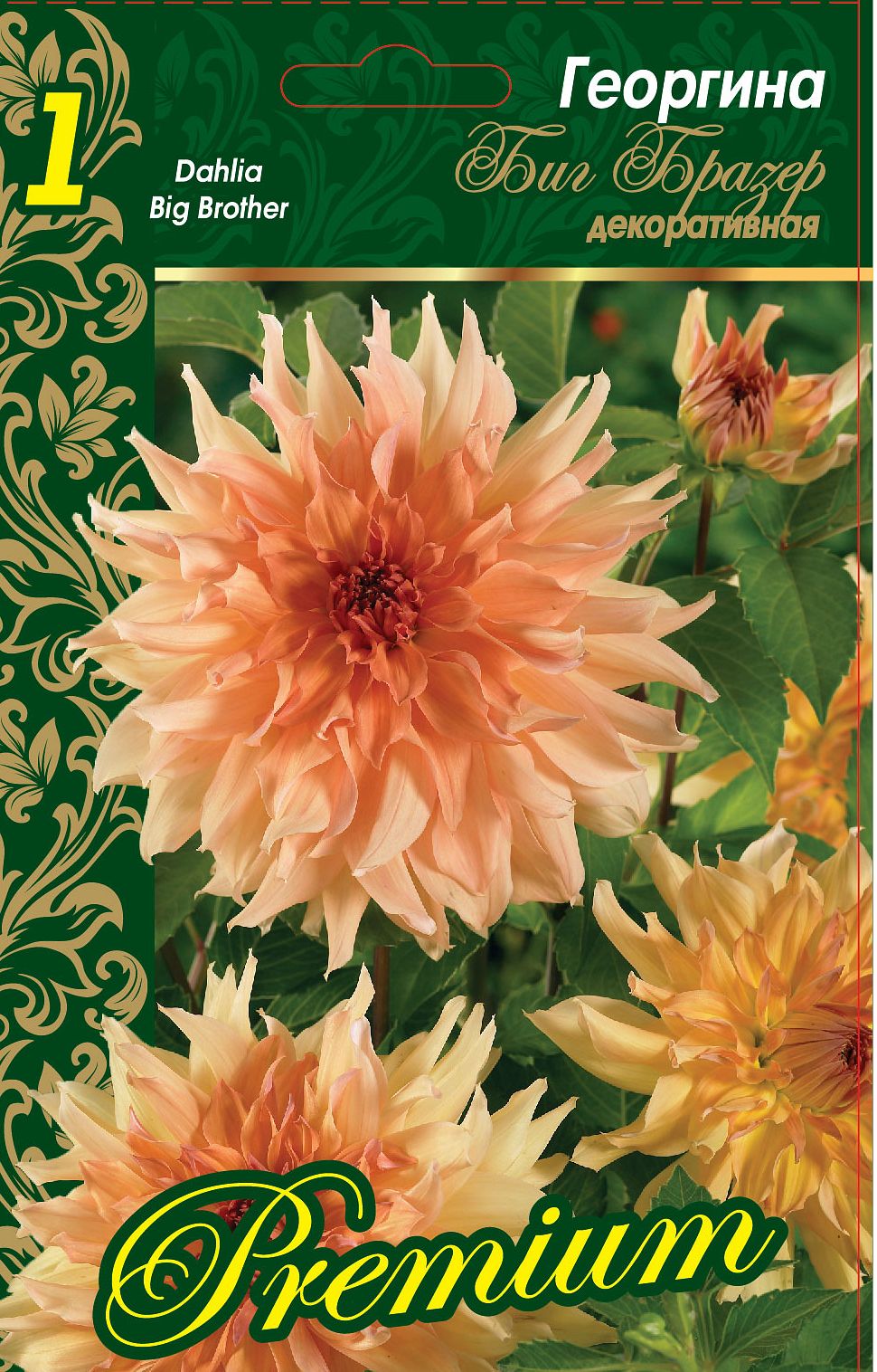Георгина Биг Бразер (декоративная) – клубневое растение высотой 90см. Очаровательные лососевые цветки достигают 20-25см в диаметре и служат замечательным украшением сада. Роскошно цветущая георгина ценится за сравнительную легкость выращивания и очень продолжительные сроки цветения. Идеально подходит для групповых посадок. Отлично смотрится в срезке. Клубни георгин рекомендовано высаживать на солнечные, защищенные от холодных ветров места с хорошей циркуляцией воздуха. Подходит любая плодородная почва, хорошо дренированная и с нейтральной кислотностью. Нежелательно высаживать в низине, вблизи залегания грунтовых вод и в затененных местах. Посадочную яму копать глубиной 10-15см. При посадке корневая шейка должна находиться на 2-3см ниже уровня почвы. Георгины сажают на расстоянии 60-70см друг от друга. В сухую погоду и в течение вегетации требуется обильный полив. Подкармливать следует несколько раз за лето, чередуя растворы органических и минеральных удобрений.
