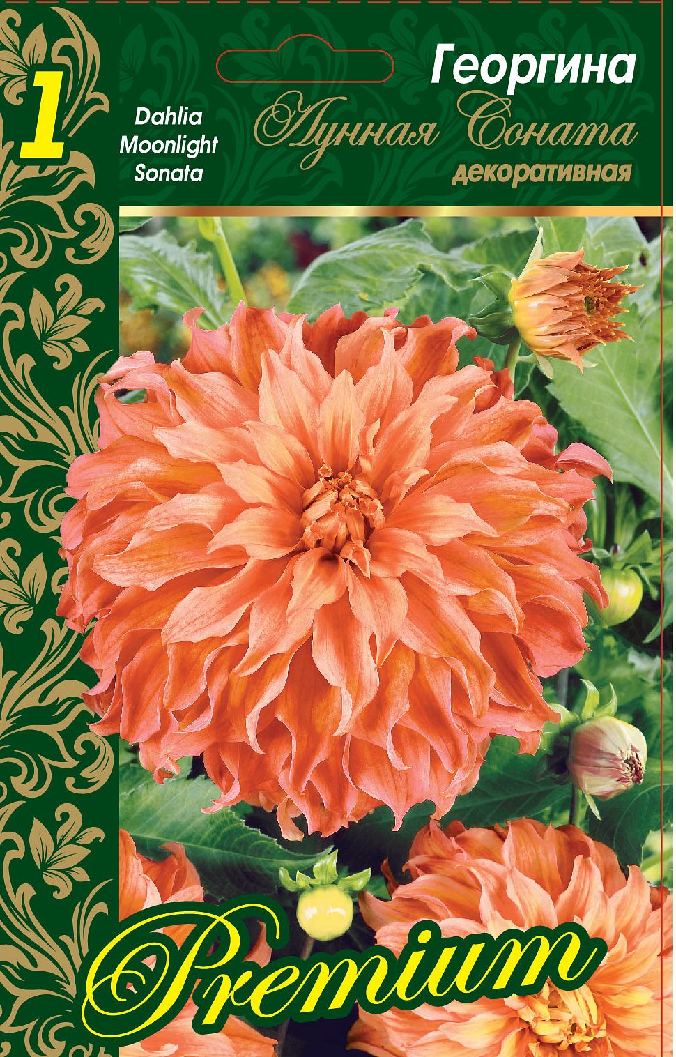 Георгина Лунная Соната (декоративная) – клубневое растение высотой 90см. Очаровательные кораллово-лососевые цветки достигают 20-25см в диаметре и служат замечательным украшением сада. Роскошно цветущая георгина ценится за сравнительную легкость выращивания и очень продолжительные сроки цветения. Идеально подходит для групповых посадок. Отлично смотрится в срезке. Клубни георгин рекомендовано высаживать на солнечные, защищенные от холодных ветров места с хорошей циркуляцией воздуха. Подходит любая плодородная почва, хорошо дренированная и с нейтральной кислотностью. Нежелательно высаживать в низине, вблизи залегания грунтовых вод и в затененных местах. Посадочную яму копать глубиной 10-15см. При посадке корневая шейка должна находиться на 2-3см ниже уровня почвы. Георгины сажают на расстоянии 60-70см друг от друга. В сухую погоду и в течение вегетации требуется обильный полив.