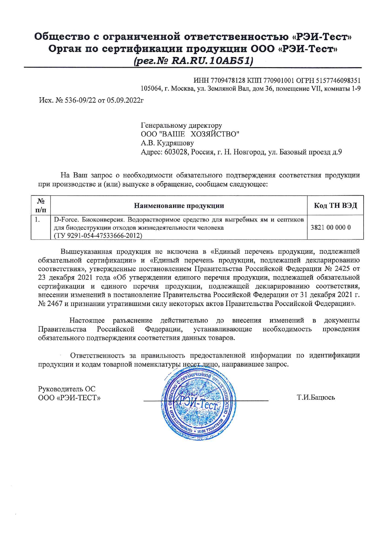Изготовитель: ООО «Ваше хозяйство», Российская Федерация, 603028, Нижегородская область, г. Нижний Новгород, ул. Базовый проезд, д. 9, +7 (831) 221-35-34
