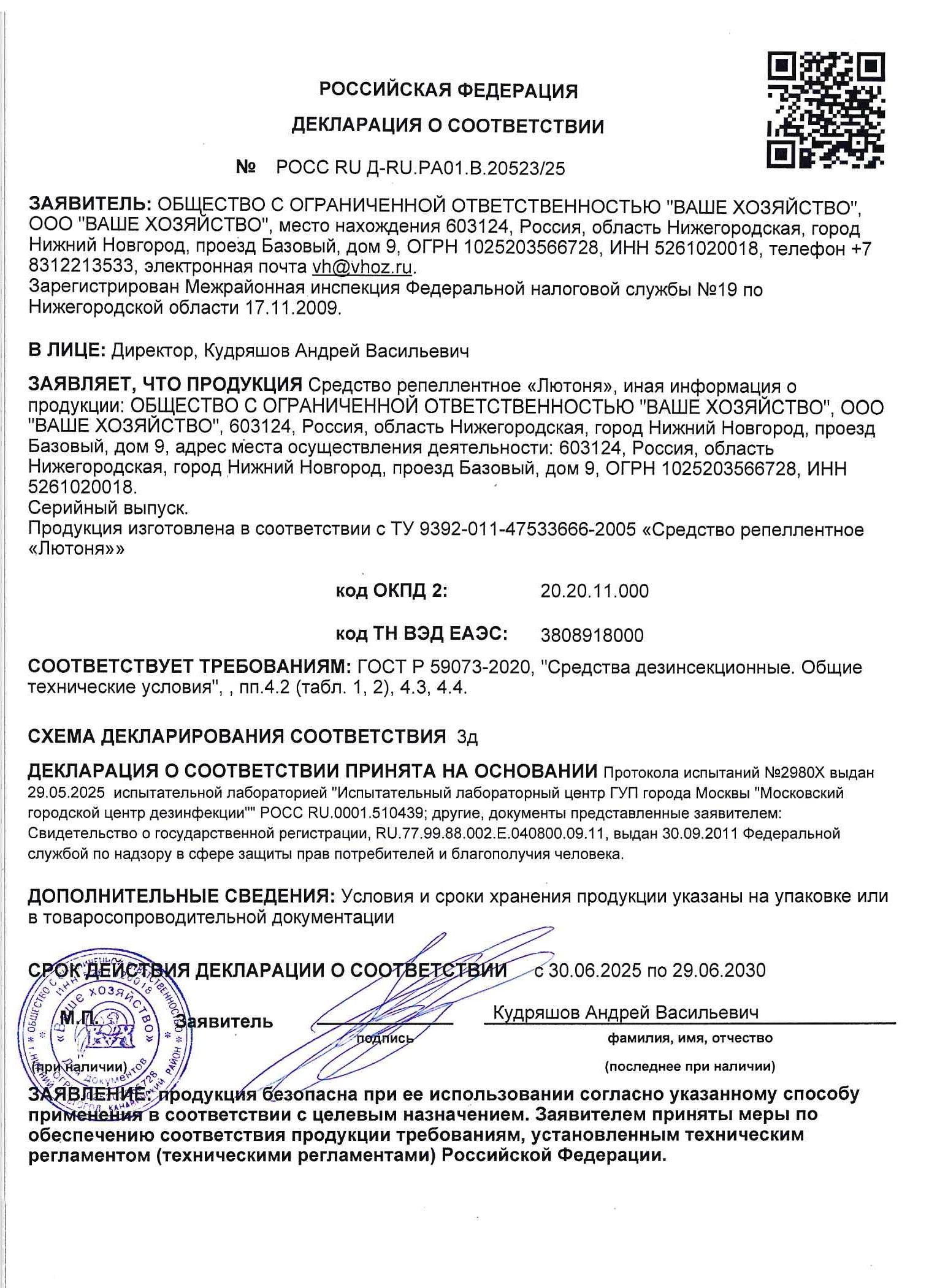 Упаковка/штрихкод «Лютоня» — крем от комаров для взрослых и детей старше 10 лет: