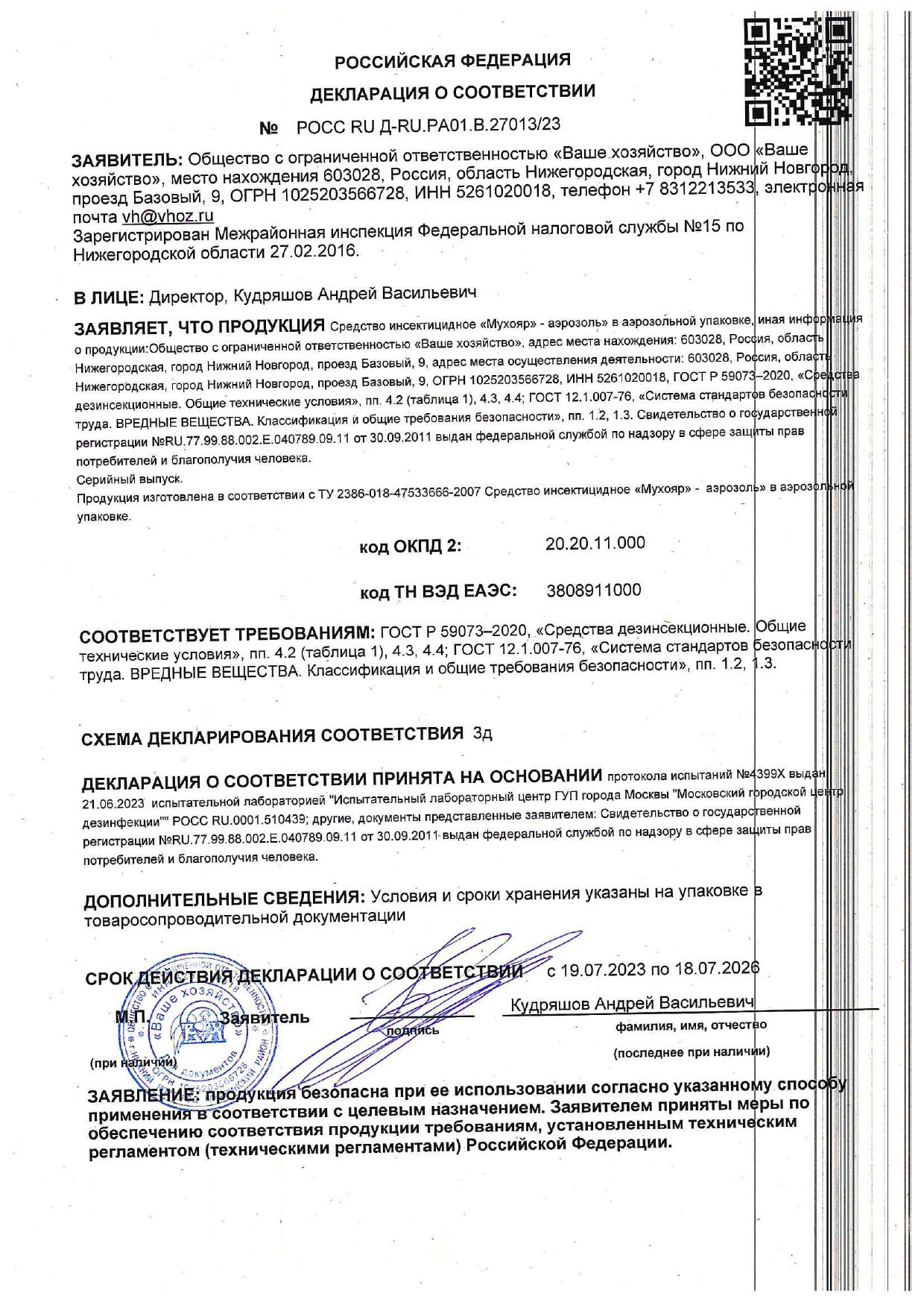 Изготовитель: ООО «Ваше хозяйство», ОГРН 1025203566728, Российская Федерация, 603124, Нижегородская область, г. Нижний Новгород, Базовый проезд, д. 9, +7 (831) 221-35-34