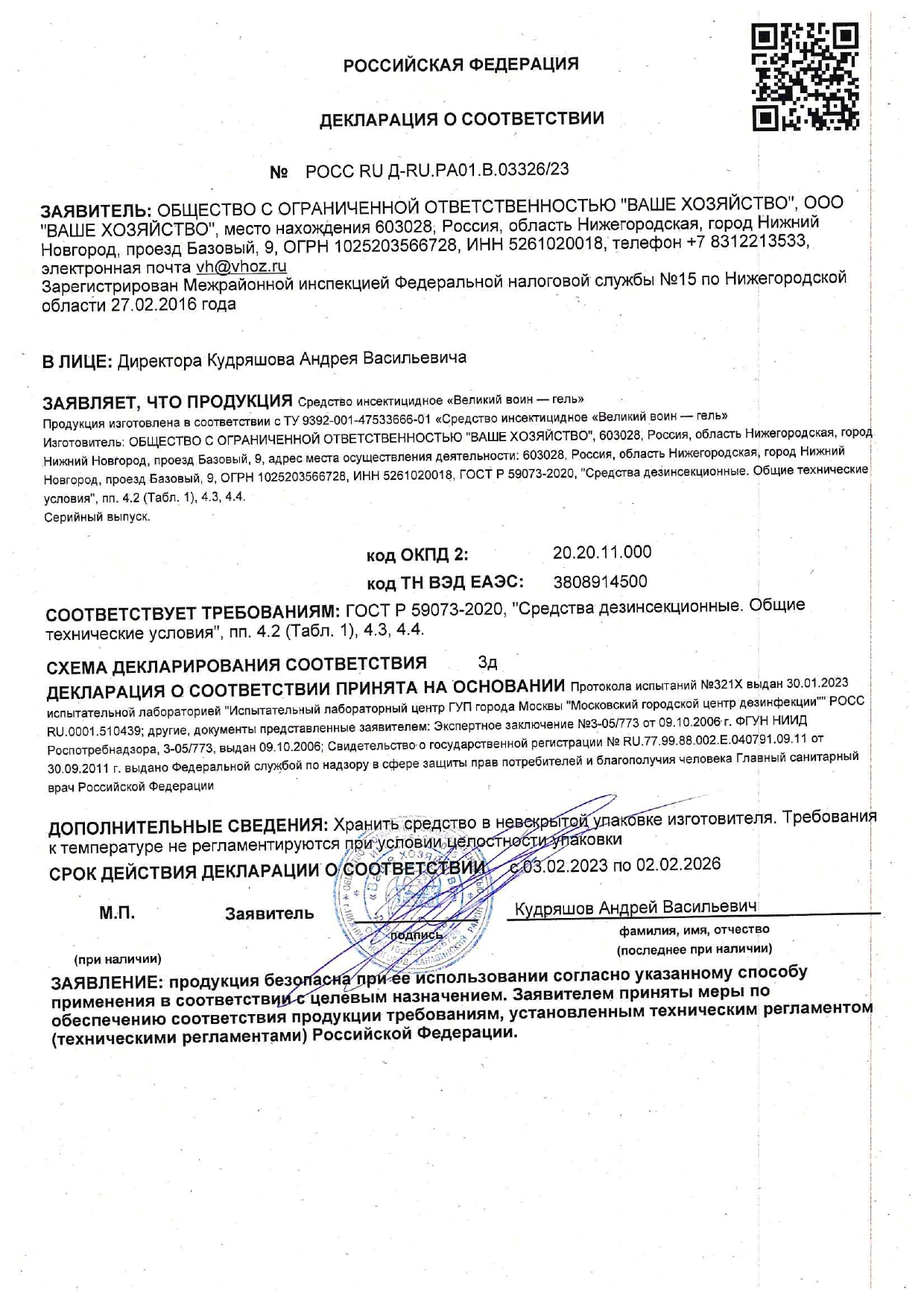 Упаковка/штрихкод «Великий воин гель» против садовых и домашних муравьев: