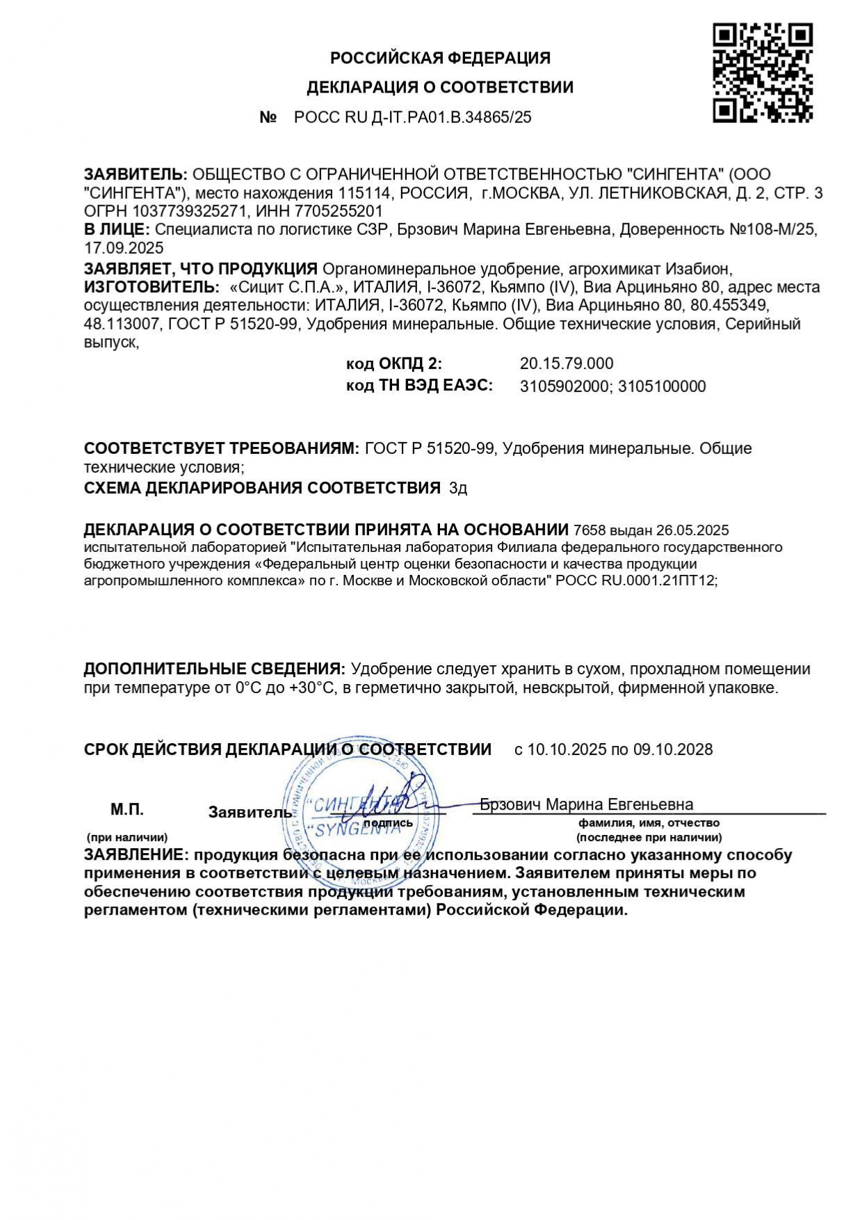 Хранение и транспортировка: удобрение следует хранить в сухом прохладном помещении при температуре от 0 до +30 °С в герметично закрытой упаковке, избегать контакта с щелочами, кислотами и нефтепродуктами, в местах, недоступных для детей и домашних животных, отдельно от пищевых продуктов и кормов.