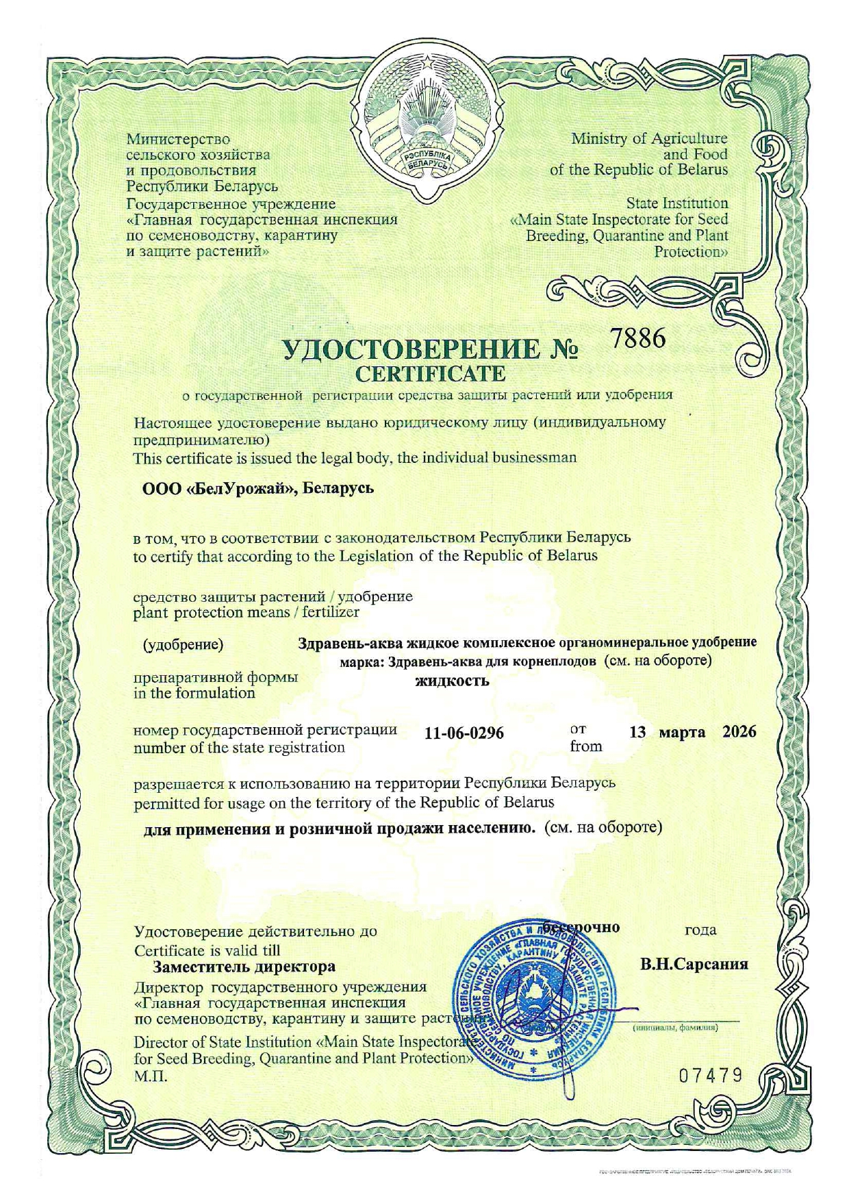 Упаковка/штрихкод «Здравень Аква для корнеплодов»