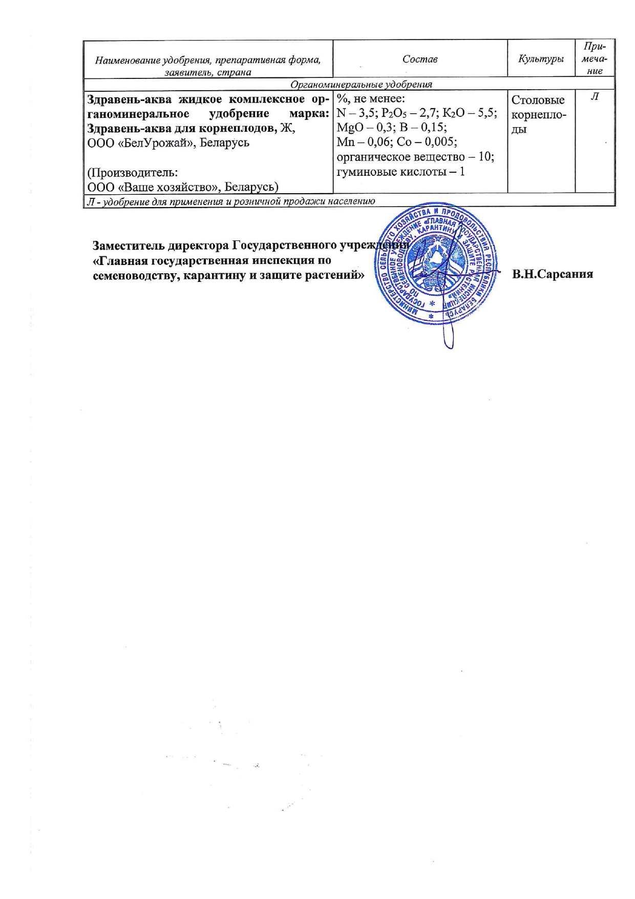 «Здравень Аква для корнеплодов» — жидкое комплексное органоминеральное удобрение для корневых и внекорневых подкормок корнеплодов в личных подсобных хозяйствах.- Содержит оптимальный для подкормки корнеплодов набор макро- и микроэлементов. Не содержит хлора.
