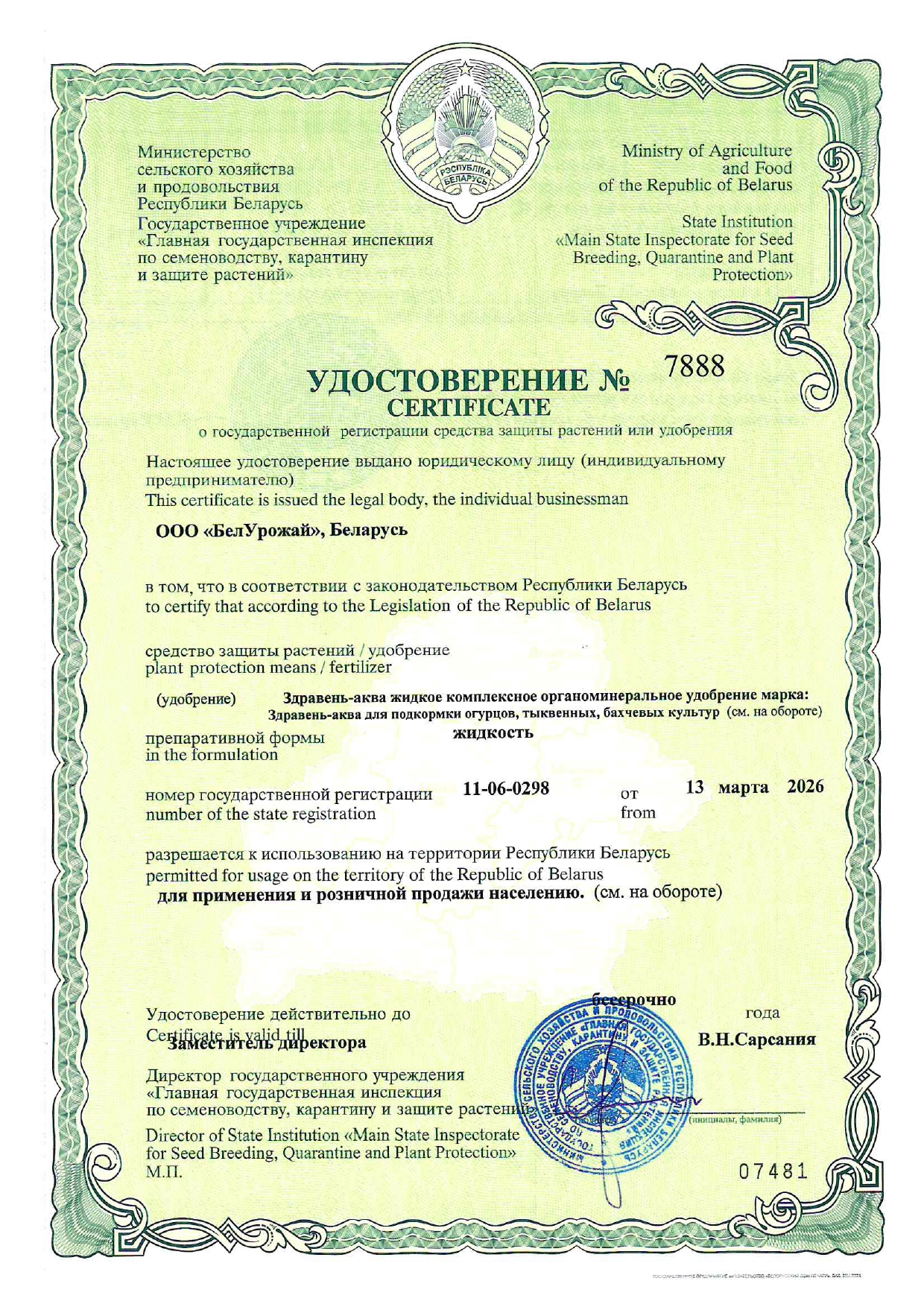 «ЗДРАВЕНЬ АКВА» — жидкое комплексное органоминеральное удобрение для корневых и внекорневых подкормок огурцов, тыквенных и бахчевых культур в личных подсобных хозяйствах.