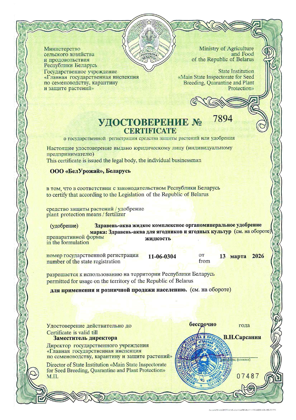 Упаковка/штрихкод «Здравень-аква для ягодников и ягодных культур»