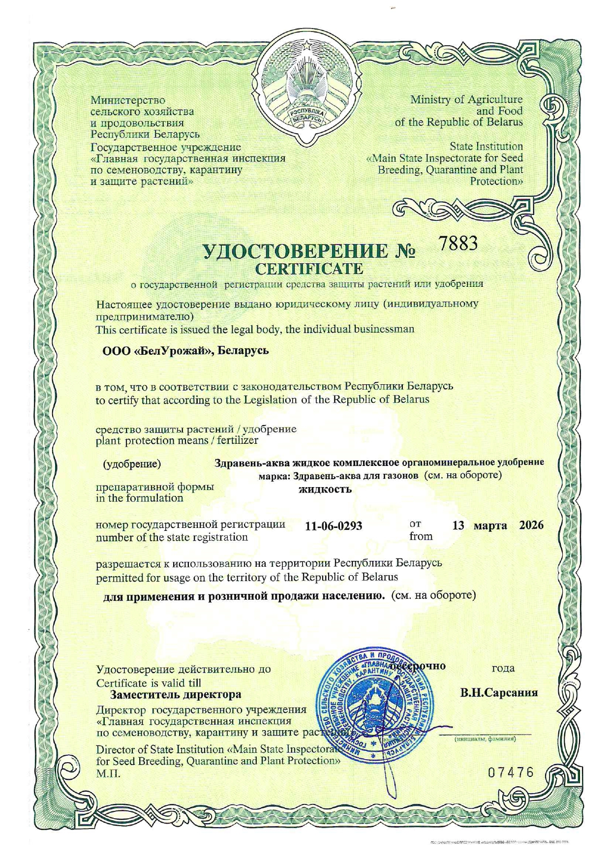 «ЗДРАВЕНЬ АКВА для газонов» для системы Аква-Стрим.