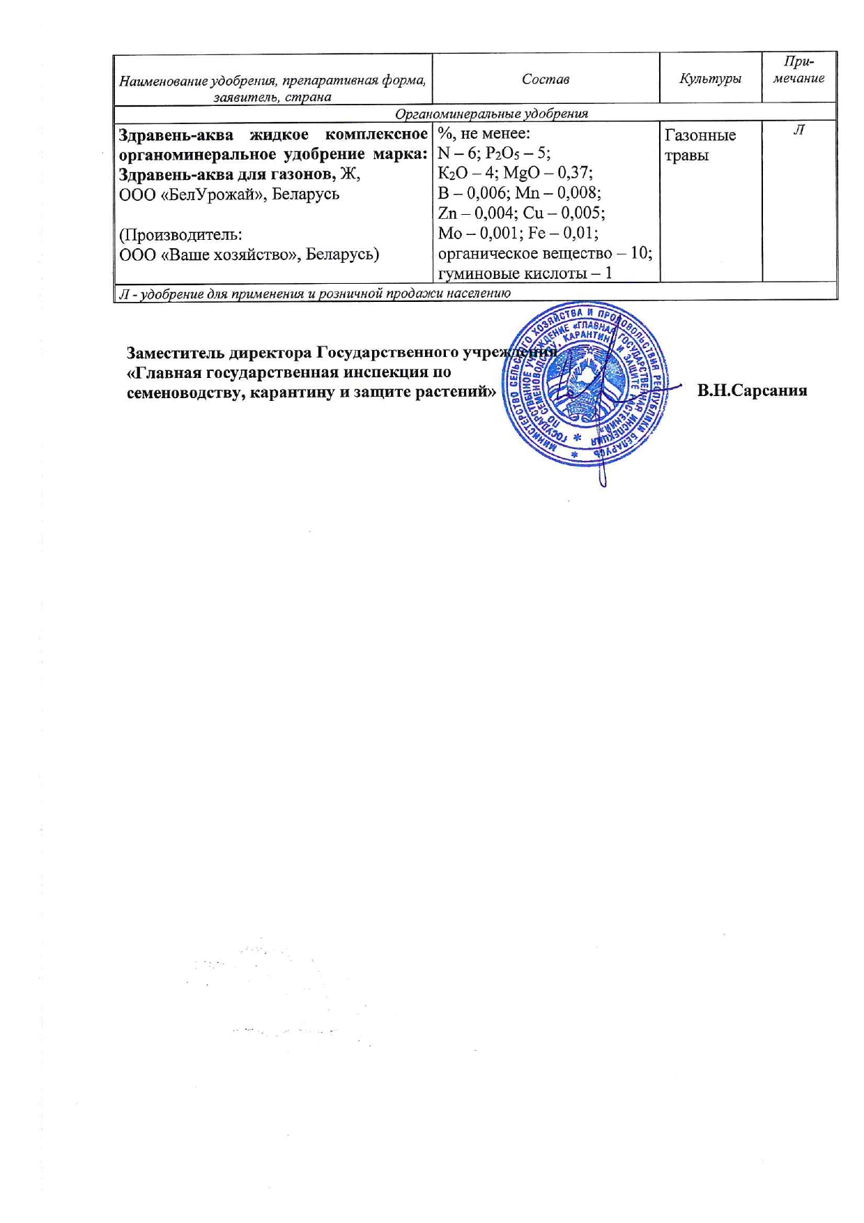 Регистрант и изготовитель: ООО «Ваше хозяйство», ОГРН 1025203566728, Российская Федерация, 603028, Нижегородская область, г. Нижний Новгород, ул. Базовый проезд, д. 9, +7 (831) 221-35-34.